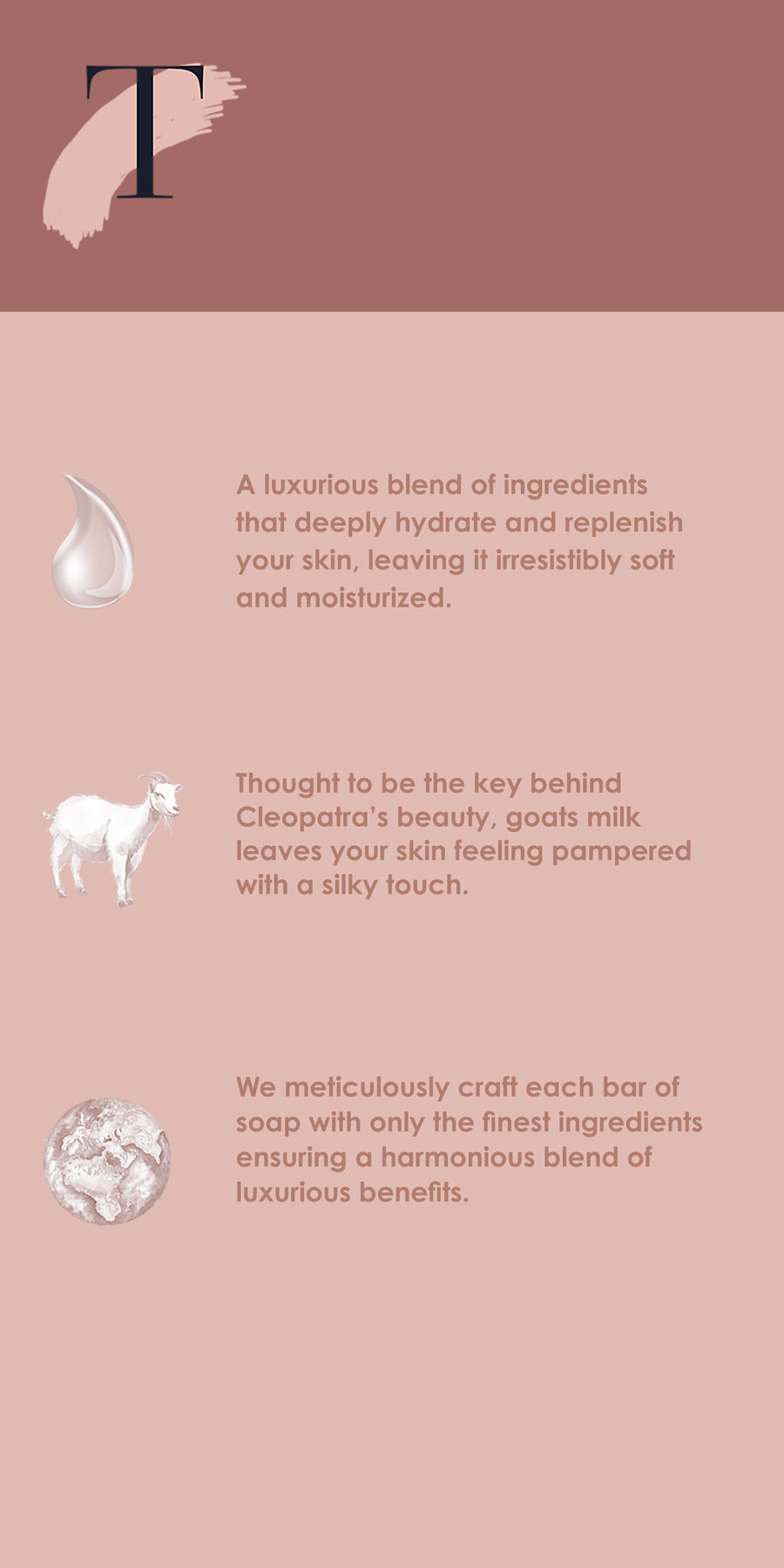 Saponified oils of (Coconut oil, Palm oil, Olive oil, Sunflower oil, Caster oil, Jojoba Oil), Shea Butter, Goats milk, Tussah Silk, Coloring and Fragrance.