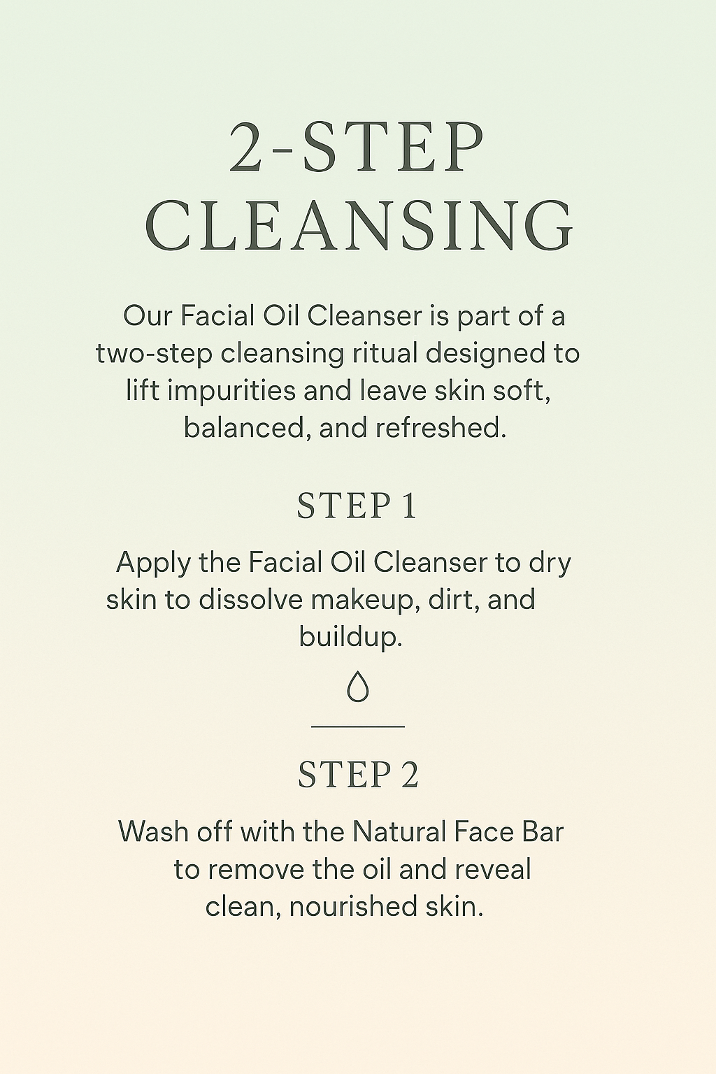 Following the oil cleanser, use our best-selling natural Face bar. This bar acts as the perfect complement, washing away any lingering impurities, dirt, and grime, ensuring a thorough cleanse without compromising the skin's delicate balance.