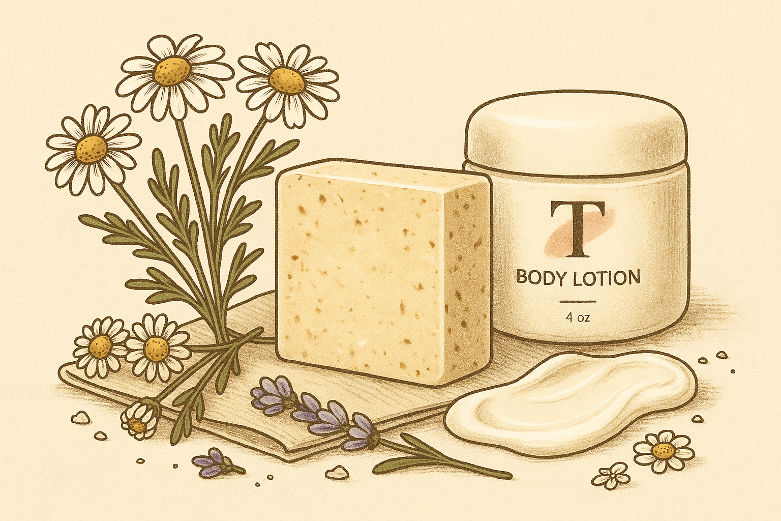 The Retreat Collection was made for the quiet part of the day—when the house finally slows down and you can, too. Our chamomile-and-lavender bar is infused with real chamomile powder, magnesium chloride, and delicate lavender petals to gently cleanse while it soothes, wrapping you in soft steam and herbal calm. Follow with the matching body lotion, a creamy blend that melts into skin with the same relaxing notes of chamomile, lavender, and a whisper of lilac. Together, they turn your shower and bedside routine into a simple, repeatable ritual of comfort: warm water, soft lather, slow breath, then lotion that leaves your skin velvety and your mind ready for sleep.