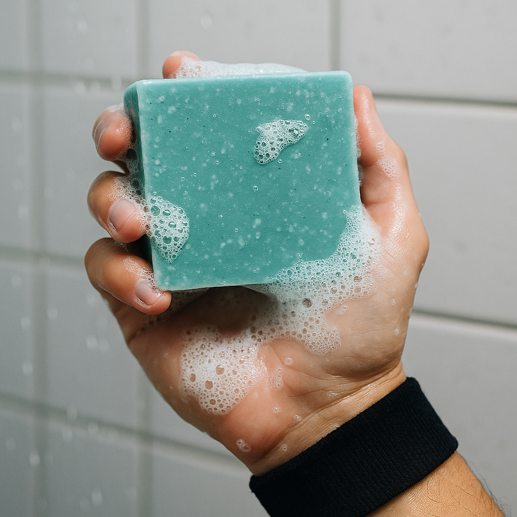 This cool teal salt bar is made for early alarms and hard sessions. Mineral-rich salt gives a deep, refreshing cleanse that cuts through sweat, while camellia seed oil steps in to keep skin feeling smooth instead of tight. Bright, spa-clean vibes and a grippy, scrubby texture make this the bar you reach for every time you actually show up.